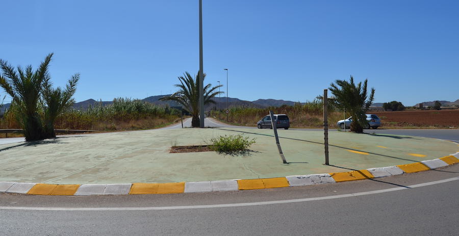 Imagen de la redonda ubicada en el cruce de la carretera de El Algar hacia Los Urrutias, que lleva más de un año carente de señales de tráfico.