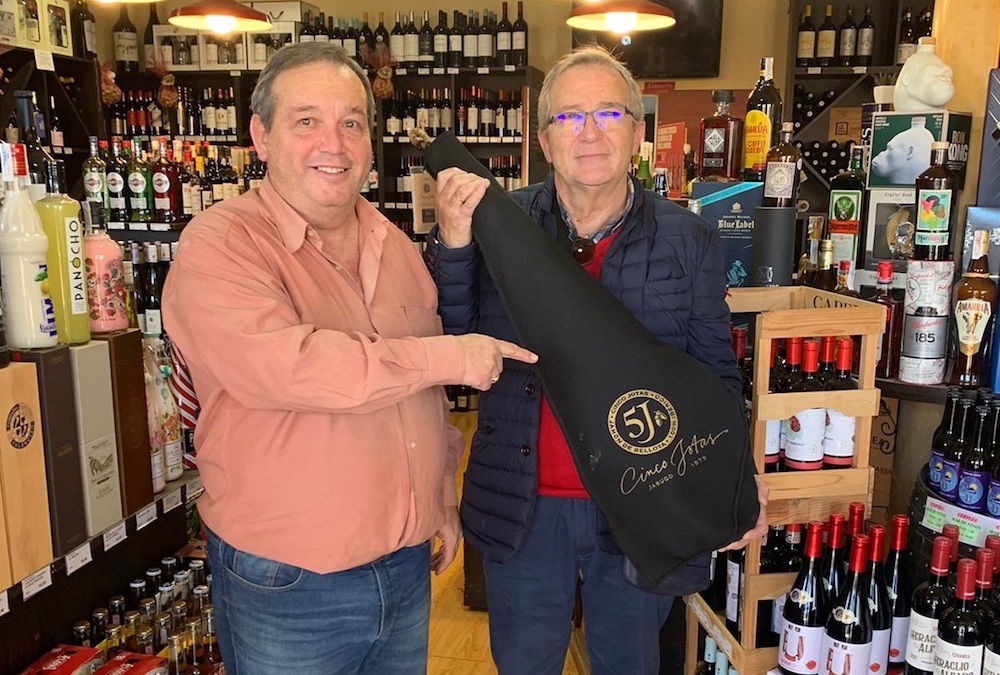 Por otro lado, la foto muestra al ganador de la rifa prenavideña organizada por la bodega del Mar Menor recogiendo el jamón 5J de 7,5 kilos de peso.