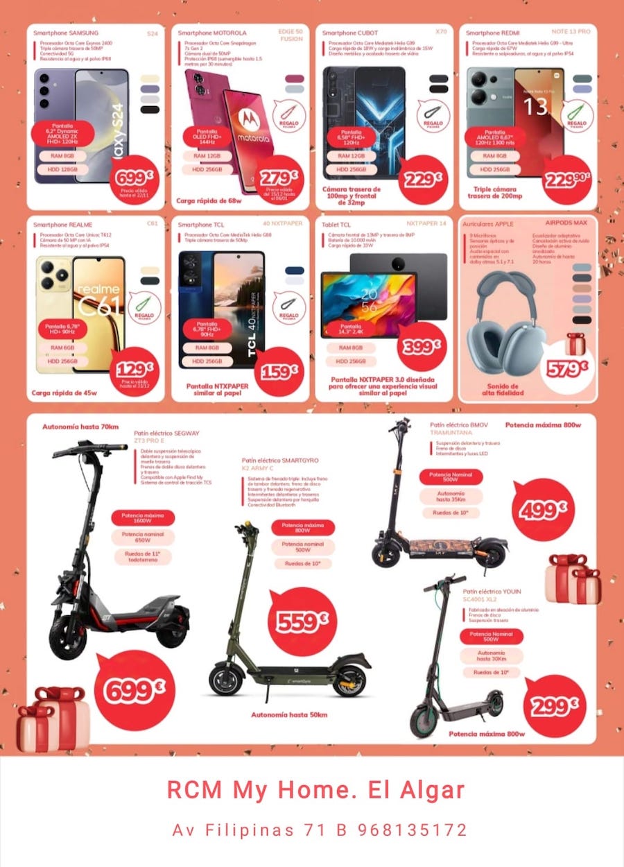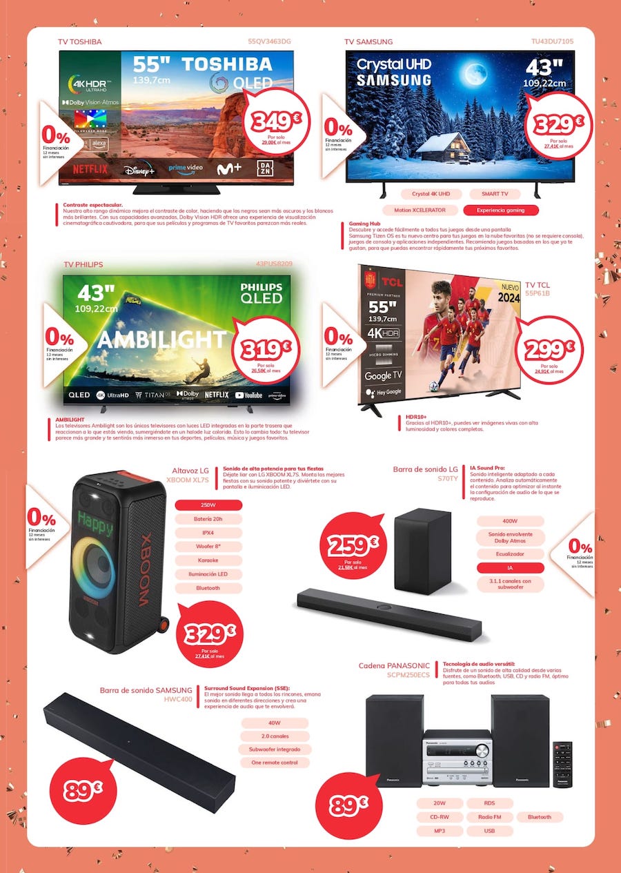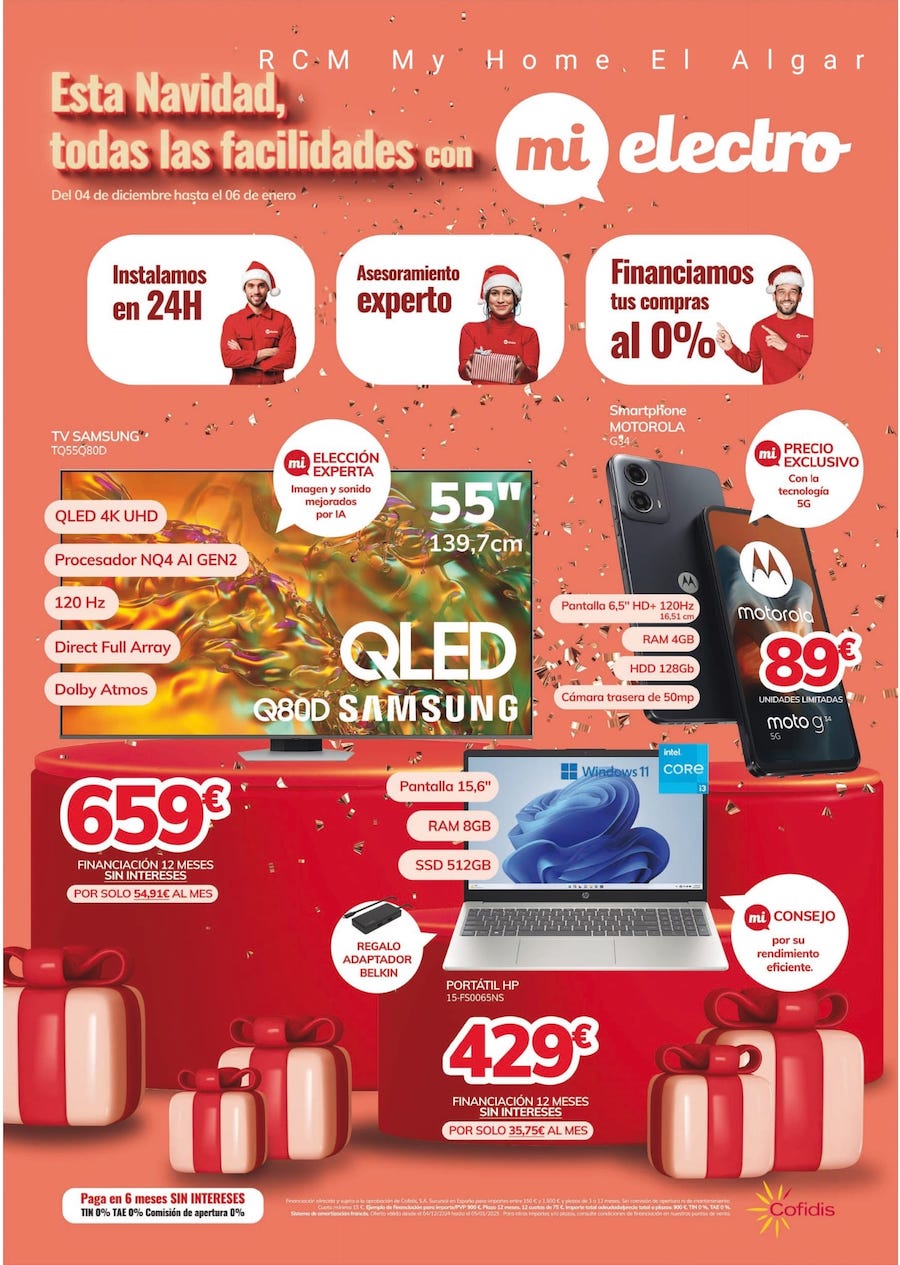 Desde hoy y hasta el 6 de enero todo son facilidades en tu establecimiento de la avenida de Filipinas de El Algar. Los mejores precios, asesoramiento experto, instalación en 24 horas, financiación sin intereses... Aquí puedes ver el catálogo, aunque te recordamos que tenemos muchos más en la tienda.