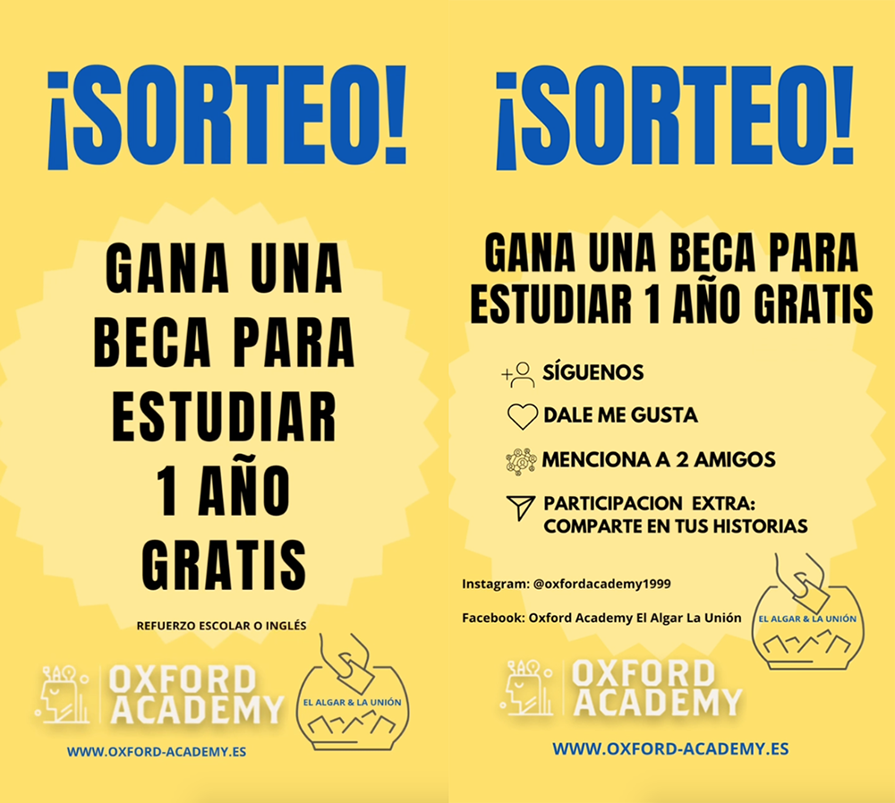 ¿Quieres ganar un año gratis en Oxford Academy El Algar&La Unión ¡Es tu momento! Aquí te explicamos cómo, con muy sencillos pasos, puedes optar a ese gran premio. Tienes hasta el 25 de septiembre.