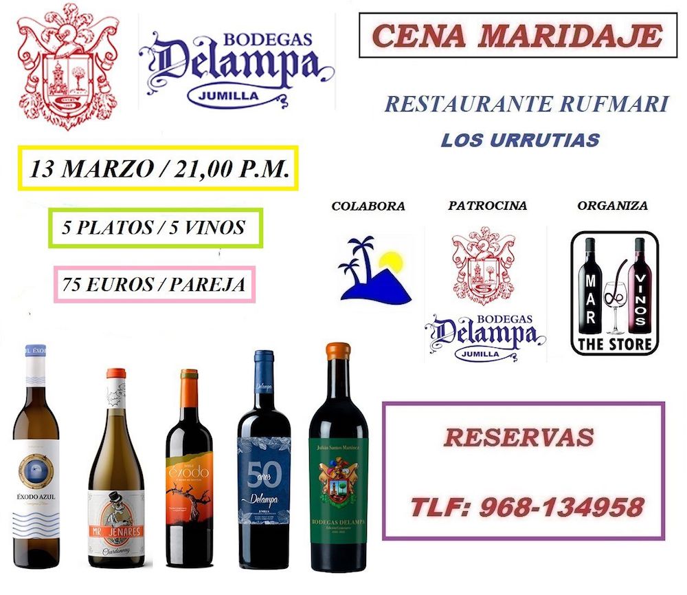 Una nueva y magnífica cena maridaje se prepara para el restaurante RufMari, bajo la organización de Mar de Vinos, la bodega del Mar Menor, y el patrocinio de Bodegas Delampa de Jumilla. Cinco platos con cinco vinos. Reserva ya.