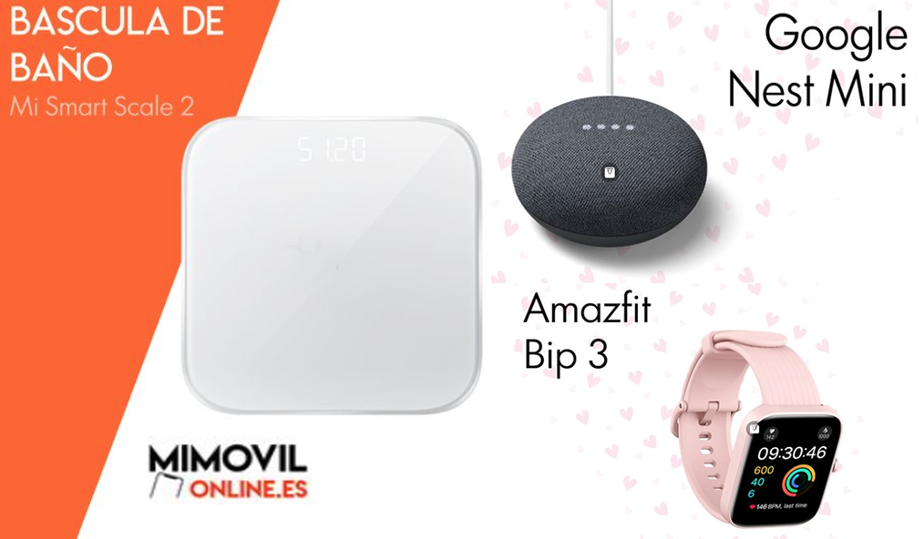 Báscula de baño inteligente que almacena datos de hasta 16 personas (de 19,90 se queda en 17,90 euros) / Altavoz inteligente para pedirle lo que necesites (29,95 euros) / 'Smartwatch Amazfit Bip 3' (baja de 65 a 59,90 euros) resistente al agua e ideal para controlar tu actividades deportiva, estrés, periodo menstrual, sueño, saturación de oxígeno...