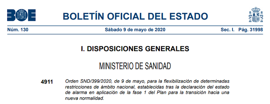 El Boletín Oficial del Estado publica hoy la orden ministerial de flexibilización de determinadas restricciones de ámbito nacional en la etapa de la transición hacia la nueva normalidad que se iniciará este lunes: pinchar aquí.