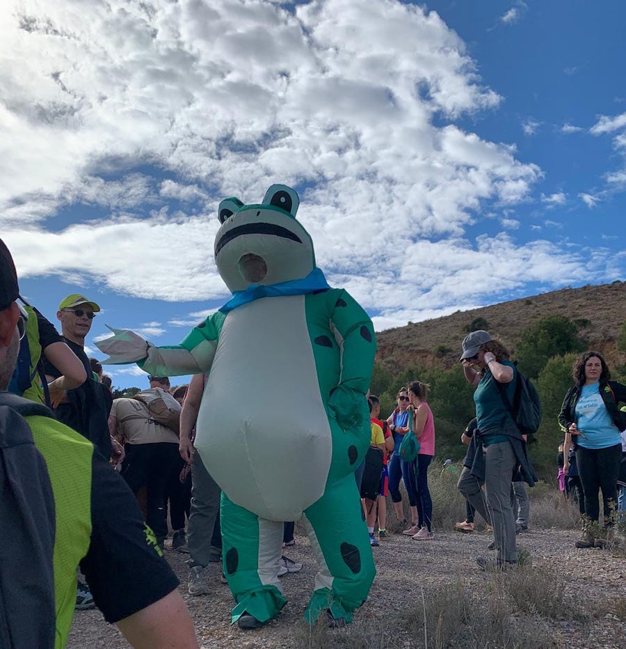 Club Trail-Running Algar ofrece fotos de la marcha senderista de inauguración del sendero PR-MU134 hasta la Fuente del Sapo, que, entre sus participantes, contó con la presencia de una caracterización del 'anfibio'.