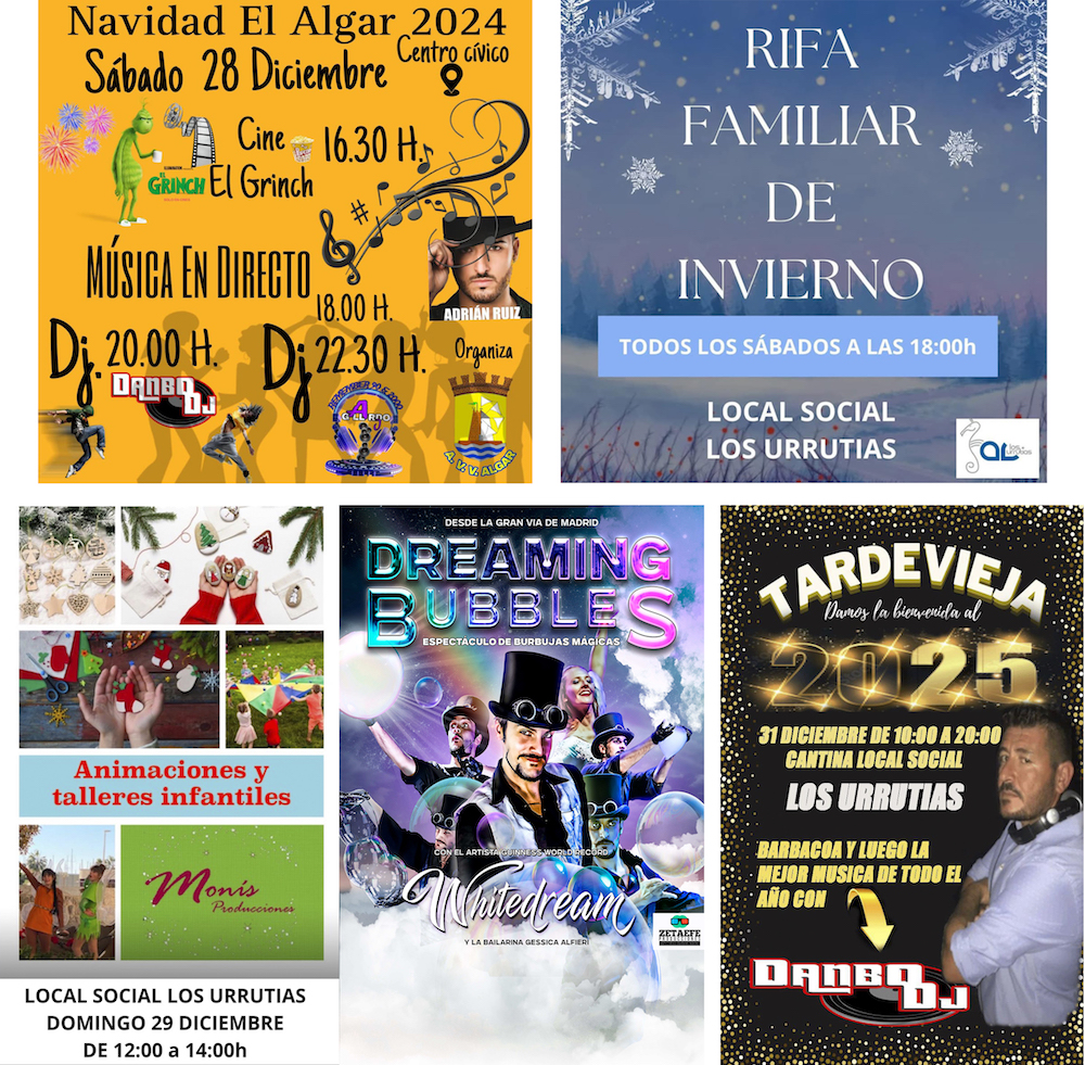 ... diversas propuestas hay en El Algar y en Los Urrutias para festejar los días navideños y los del salto de año, como la fiesta que esta tarde hay en el centro cívico algareño o la 'Tardevieja' urrutiense, entre otras.