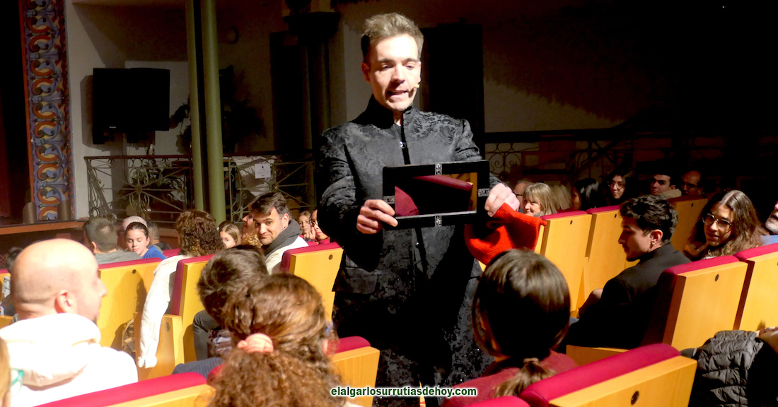 Teatro Circo Apolo ha iniciado el nuevo año de 2026 con el espectáculo 'Magic Comedy', que combinó el buen ilusionismo con el humor a través de tres artistas con la colaboración de los espectadores. En la imagen se observa al valenciano Jammes Garibo (Premio nacional de Magia) entre los asistentes al modernista inmueble algareño.