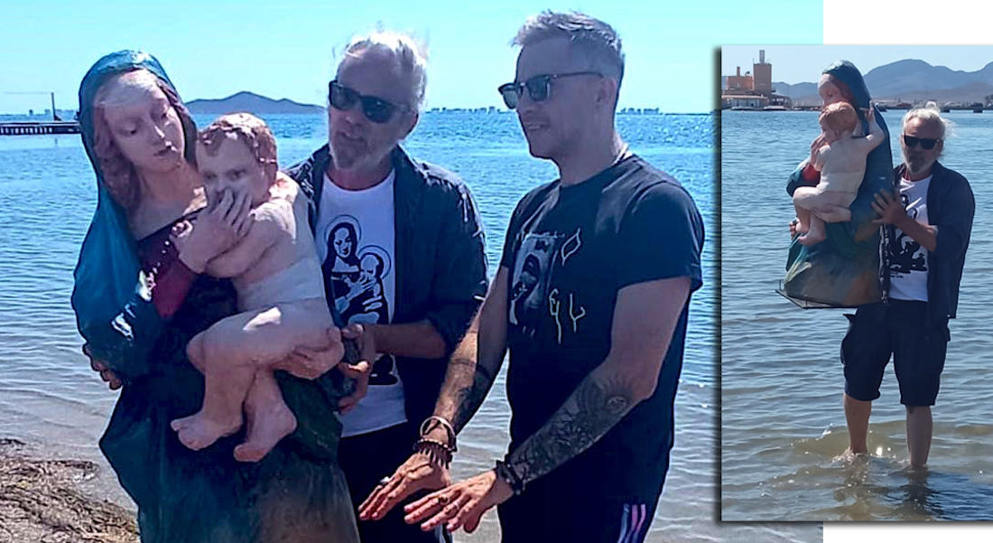 Es la traducción de 'Madonna dell’acqua lurida', título de la talla creada en material biodegradable que esta mañana, coincidiendo con el 'Día mundial de medio ambiente', han sido sumergida en el agua de Los Urrutias para expresar 'el malestar divino' por la contaminación del mar, siendo esta representación un preludio del documental-denuncia contra granjas de animales de la Región de Murcia que esta tarde se proyecta en Cartagena.