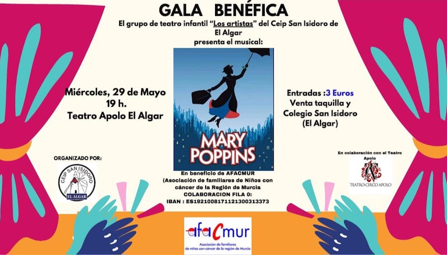 El grupo de teatro infantil 'Los artistas' del CEIP San Isidoro de El Algar representará el musical 'Mary Poppins' el 29 de ayo en el Teatro Circo Apolo para ayudar en la labor que lleva a cabo Afacmur.
