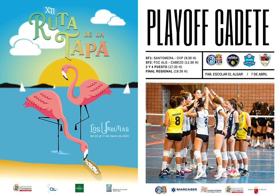 Este sábado, a las 12 horas, restaurante Ruf-Mari acoge la entrega de los premios de la 'XII Ruta de la tapa de Los Urrutias'. Además, en el deporte, vuelve el baloncesto mientras que las fiestas de Murcia demoran el pleno retorno del fútbol base. Juega en casa el CD Algar y viaja a Alicante el FC Cartagena-AD Algar Surmenor para cerrar la liga regular. El domingo, su equipo cadete, luchará por ser campeón regional en el pabellón algareño. También jugará como local en el Sánchez Luengo el CD Algar de Tercera RFEF.