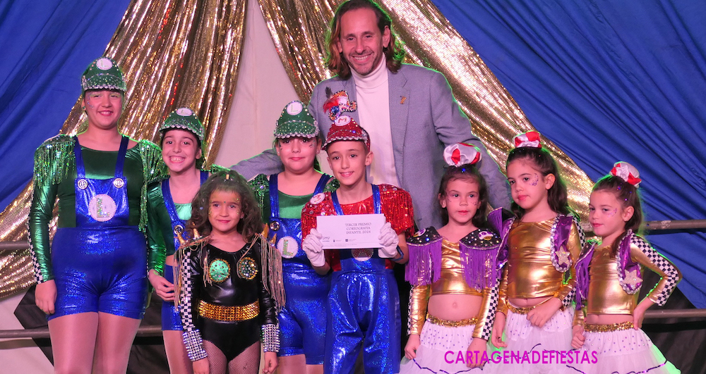 El grupo de El Algar recibió anoche , en la clausura del Carnaval de Cartagena'24, el tercer premio del XXI concurso de coreografías (dotación de 200 euros) y el premio a la creatividad del desfile general (200 euros).