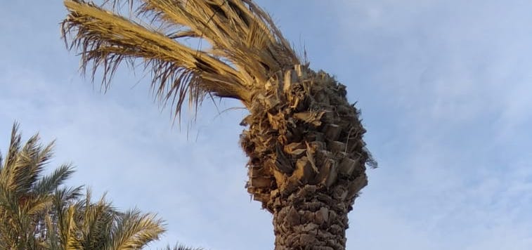 Es el comentario de muchos viandantes cuando transitan por el paseo marítimo de Los Urrutias y contemplar la fisonomía y situación de esta palmera.
