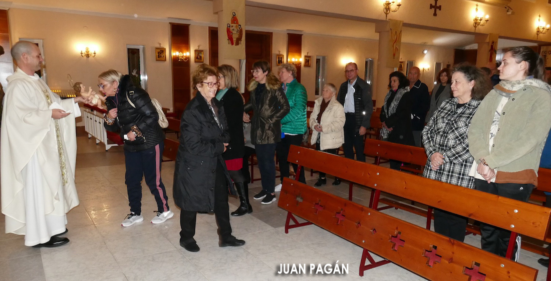 Maritere Gómez fue la persona agraciada con la imagen que cada año regala Juan Pagán a la conclusión de la 'misa del gallo' de Los Urrutias y que en esta ocasión, como novedad, fue una talla de la Virgen del Carmen, patrona de esta localidad costera. La fórmula para elegir qué persona será la agraciada es un sorteo entre los asistentes, no teniéndose que pagar nada por participar.