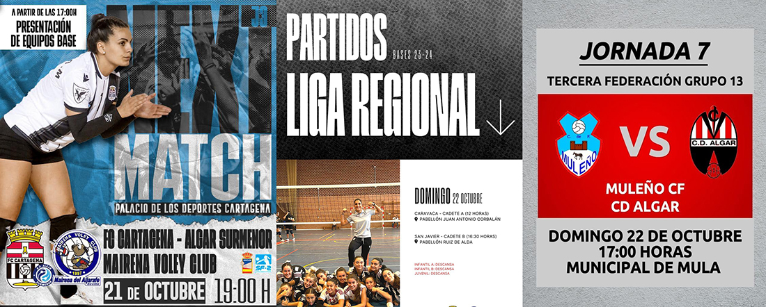 Las bases de la AD Algar Surmenor se presentan en el Palacio de Deportes esta tarde, antes del inicio del partido de la SF2. En el fútbol, visita del CD Algar de Tercera RFEF a Mula y 12 partidos para sus equipos de base. En baloncesto hay partidos para los equipos júnior y sénior de CB Sierramar. El domingo pasará la prueba ciclista de La Unión por El Algar en dos ocasiones. Fuera del deporte está la obra de teatro de hoy en el Apolo.