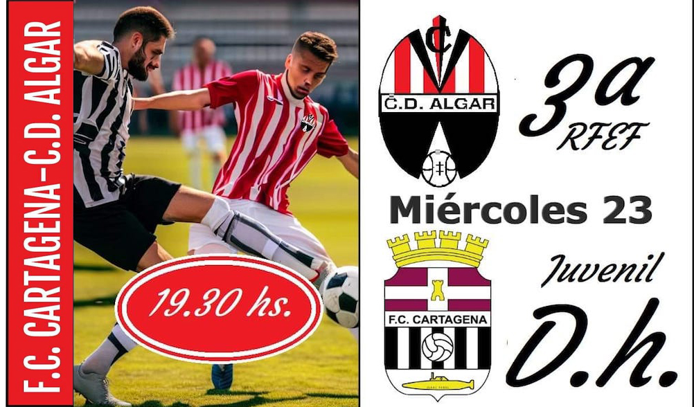 La plantilla de Tercera RFEF del CD Algar que entrena David Bascuñana afronta hoy, a partir de las siete y media de la tarde, en el campo Sánchez Luengo, frente al FC Cartagena que compite en la máxima categoría juvenil, la División de Honor. Entrada gratuita. Será el cuarto test de pretemporada del cuadro algareño, que lleva un balance de una victoria y dos empates hasta ahora.