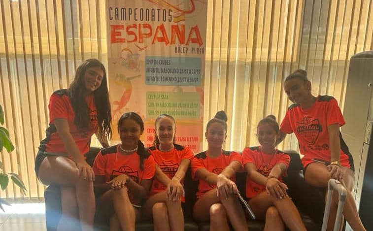 Jugadoras del equipo infantil de la AD Algar Surmenor que ya se encuentra en Lorca para disputar desde este viernes y hasta el domingo el Campeonato de España de voley playa.