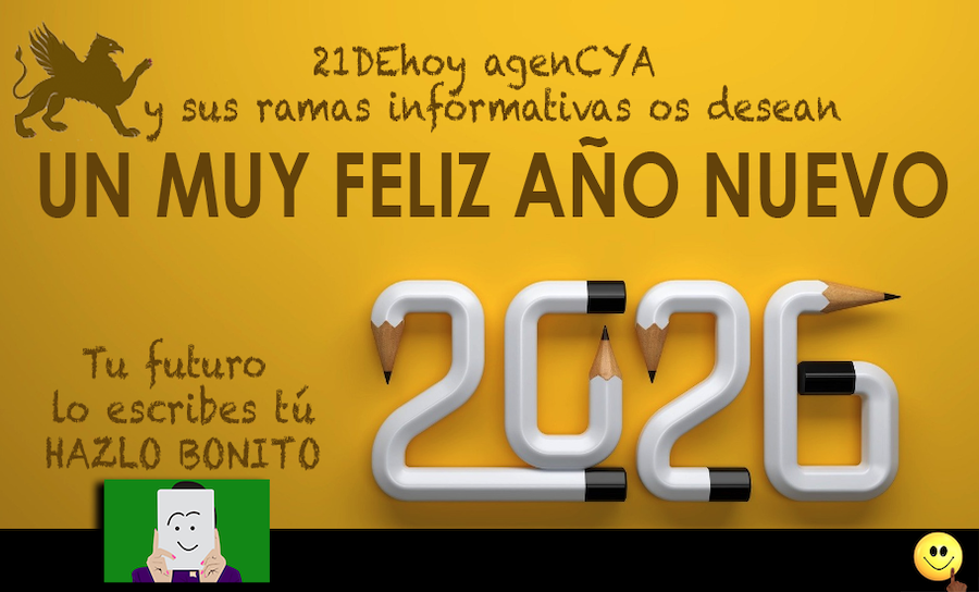 'Lo que no se conoce no existe y lo que no se disfruta... tampoco' Por vosotros, por los que os quieren, disfrutad cada segundo el nuevo año. Ojalá los nuevos días lleven una mayor carga de felicidad para todos, además de la que cada uno sea capaz de ponerle. Desde los periódicos y revistas de empresa 21DEhoy agenCYA os deseamos a todos los mejor. Os lo merecéis.