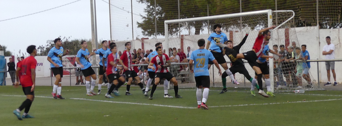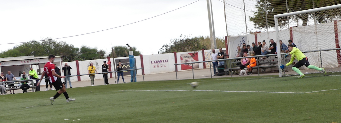 El CD Algar B de segunda autonómica estuvo en dos ocasiones por debajo en el marcador en su partido contra el CD Lumbreras, pero dio la vuelta al marcador con la inspiración de Bartolo, quien marcó 3 goles, y el equipo se coloca en lo más alto de la clasificación. Cada equipo falló un penalti. En la imagen, el lanzado por Iván que repelió Francisco de Asís.