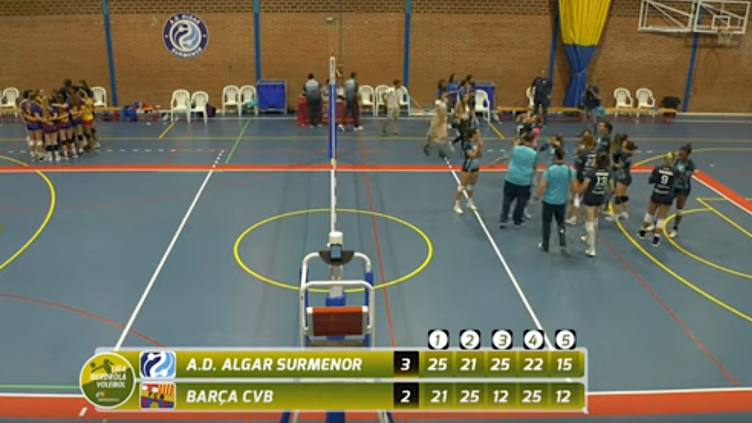El equipo algareño logra su segunda victoria consecutiva en la élite del voleibol femenino y la primera ante su afición al superar al CVB Barça en un encuentro intenso que se resolvió en la 'muerte súbita'. Más de quinientos espectadores fijan la mejor entrada en el pabellón escolar en la historia del club.