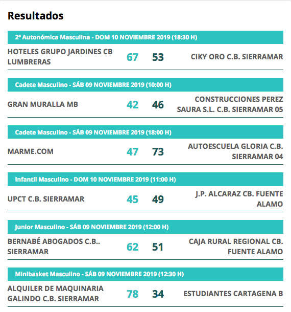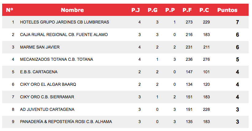 Los equipos sénior de segunda autonómica tuvieron dispares marcadores, pues El Algar venció al Totana (71-58) mientras que perdió en Puerto Lumbreras el CB Sierramar (67-53). Por lo que respecta a los equipos de base de este último club, sus compromisos ligueros en categorías de base se resolvieron con cuatro victorias y una derrota.