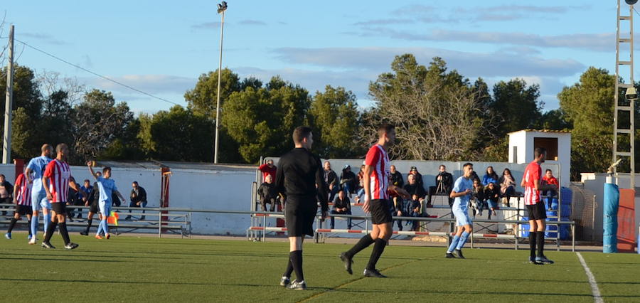 Un penalti más que riguroso, y que fue muy protestado por los jugadores y la afición local, dio al traste con el tremendo esfuerzo que realizaron los rojiblancos frente al Bullense, tercer clasificado de Preferente y que se mostró como uno de los equipos llamados a ascender de categoría.