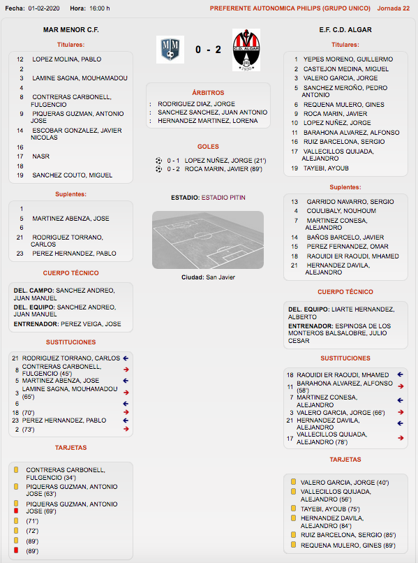ÁRBITRO: Jorge Rodríguez Díaz. Obsequio a los dos equipos con muchas tarjetas y hasta dos expulsados por el bando local.