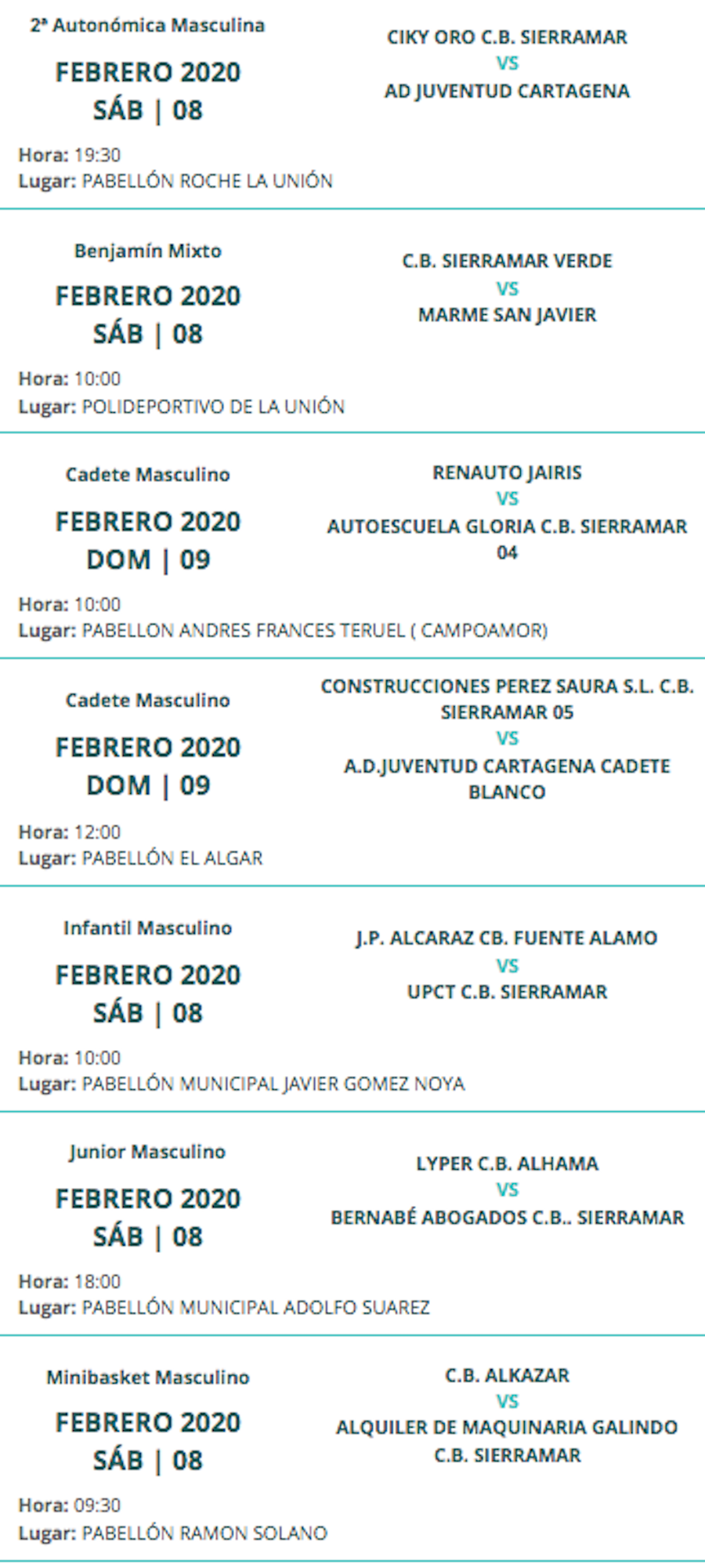 El Algar de segunda autonómica sénior se enfrenta al EB Salesianos este sábado en Los Dolores (Cartagena) y en estas misma categoría, el CB Sierramar recibe al Cartagena. También juegan seis equipos de base de este último club, de los que el cadete masculino lo hará el domingo en El Algar.