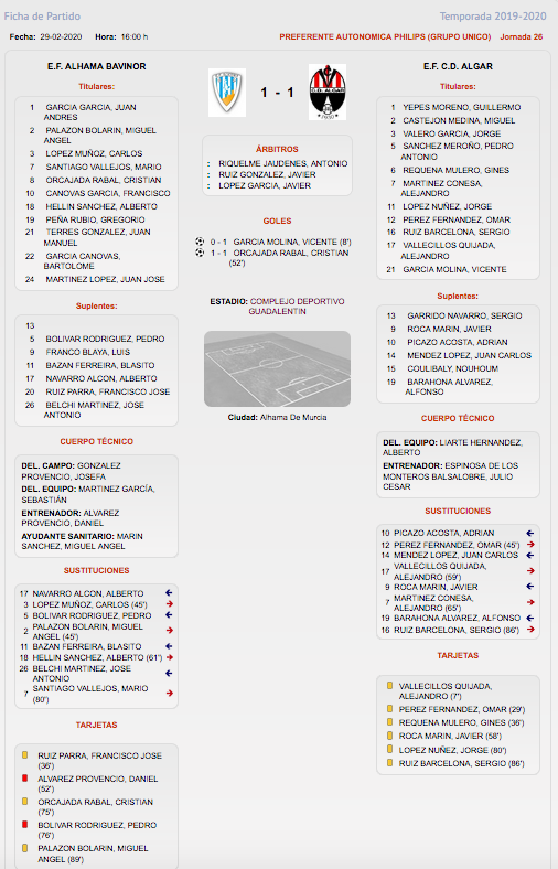 Ese primer acto acabó con ventaja de los algareños, renta que anularía el cuadro local al poco de comenzar la segunda parte. Después, el cuadro algareño pudo haber resuelto el encuentro a su favor, pero faltó resolución acertada para las ocasiones de gol que generó ante un rival que jugó el último cuarto de hora con un futbolista menos. Al final, un punto que es muy poca cosecha para las ocasiones que se le presentaron.