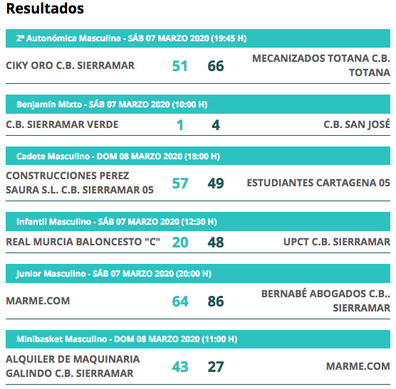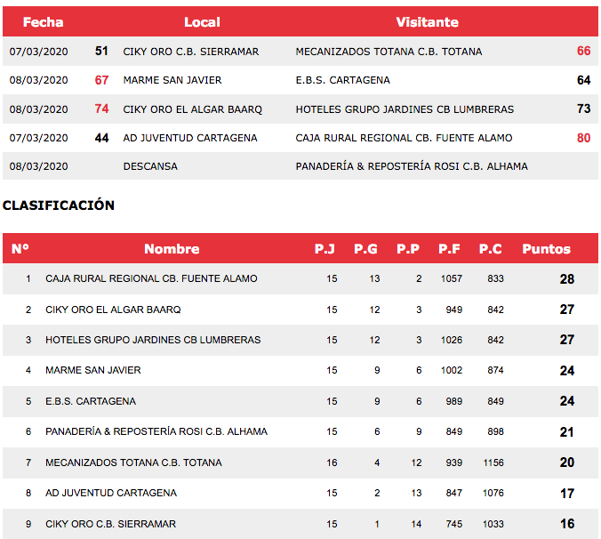 El Algar logró una gran victoria sobre el CB Lumbreras (74-73) en segunda autonómica sénior, al que desbanca, situándose ahora a un punto del nuevo líder, CB Fuente Álamo (al que visita esta semana), a falta de una jornada para acabar la fase regional. Por su parte, el CB Sierramar saldó con cuatro victorias y dos derrotas sus compromisos federados.