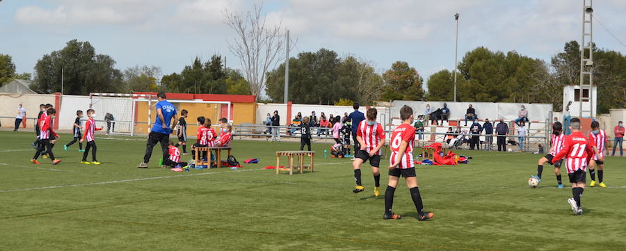 Jornada curiosa para los equipos del club rojiblanco que disputan ligas federadas, pues sólo consiguieron vencer los cuatro que disputaban sus compromisos fuera de casa, mientras que ante sus aficionados empató la formación de Preferente y perdió el infantil, al que se observa en la imagen adjunta frente al Torre Pacheco.