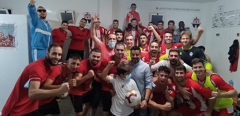 Foto de la euforia de la plantilla en el vestuario tras la última victoria sobre el Olímpico de Totana