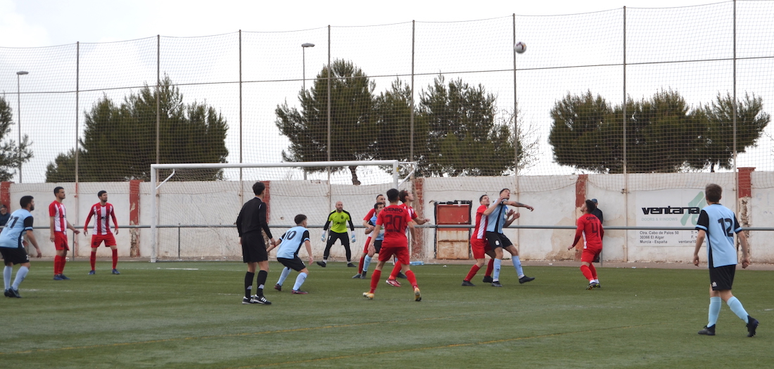 Partido de preferente autonómica de fútbol disputado en el campo Sánchez Luengo de El Algar. Tarjetas amarillas para los locales Pagán, Javi Inglés y Jorge, y para los visitantes Jesús, Vicente y doble para López, expulsado en el minuto 89.