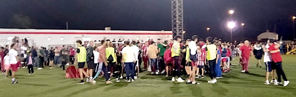 Fue una noche mágica la que envolvió anoche un encuentro de claro dominio local, espoleados los jugadores por el valor de lo que había en juego y por una afición que acudió en masa al campo ‘Sánchez Luengo’ para animar a su equipo. Al terminar el encuentro se desbordó la locura entre jugadores y aficionados.
