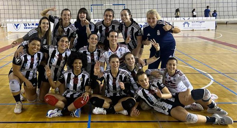 Las albinegras salieron de inicio con Ahizar Zuniaga en la colocación; Alba García de opuesta; Aurora Tur y Cristina Llorens de receptoras, Leticia Delagrammatikas e Inés laguía como centrales; y Belén Cabrera de líbero.