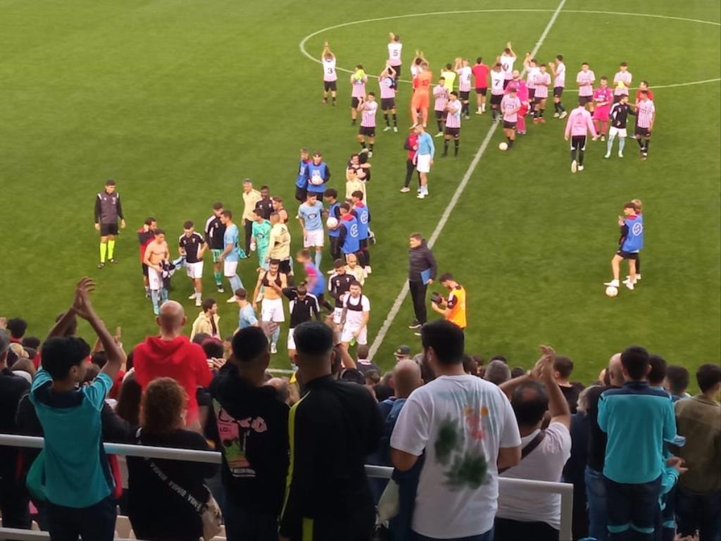 Jugadores de las bases del CD recibiendo con aplausos a los futbolistas del Celta