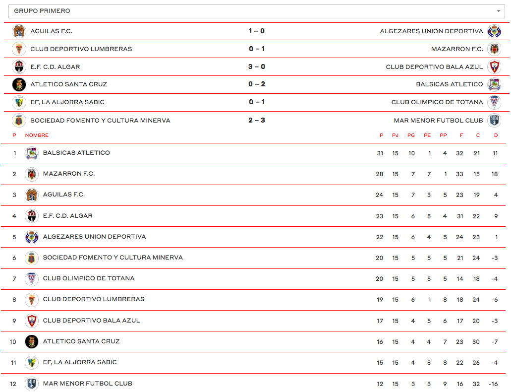 Los resultados han acompañado al equipo rojiblanco en la jornada de preferente, pues a su victoria se junta las derrotas del Algezares y del Minerva, con lo que el equipo de David Bascuñana vuelve a la cuarta posición de la clasificación.
