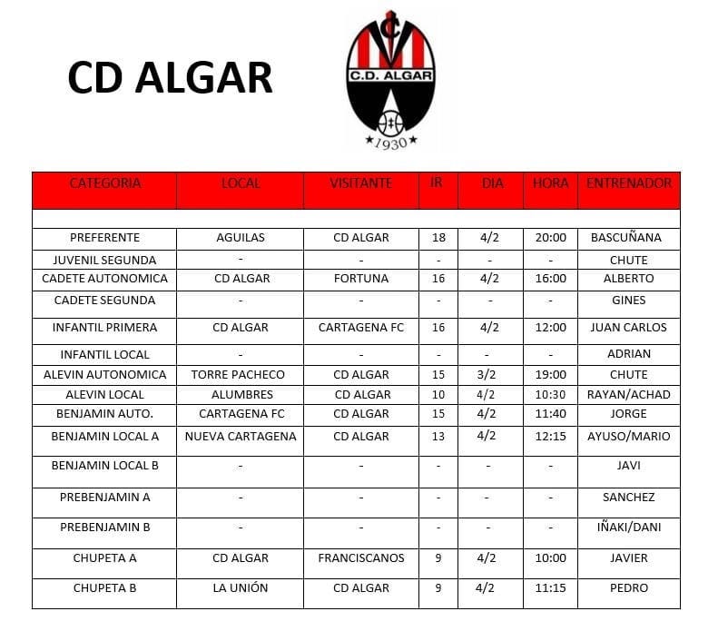Rivales, fechas y horas de los partidos de este fin de semana de los equipos del CD Algar de fútbol, CB Sierramar de baloncesto y El Algar-La Unión Sumenor de voleibol.
