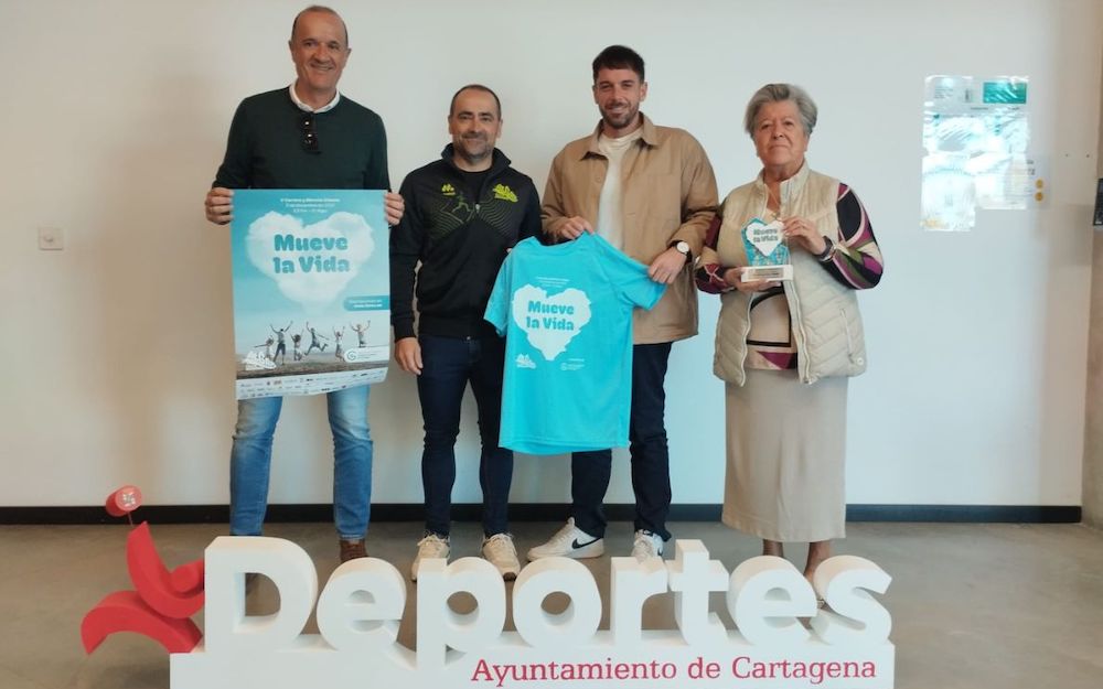 La quinta edición, que se celebra a beneficio de la 'Asociación española de lucha contra el cáncer', tendrá lugar el próximo domingo por los lugares más emblemáticos de El Algar. La prueba consiste en una carrera popular y marcha a pie sobre una distancia de 5,3 kilómetros. En la foto, una representación de la organización con el edil de Deportes.