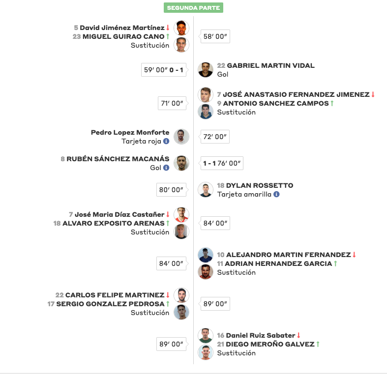 Los rojiblancos, que se adelantaron en el marcador, no pudieron aguante este resultado, pero, al menos, consiguieron sumar un punto gracias al gol del nuevo jugador incorporada a las filas algareños, Gabi, tras un remate con su pierna izquierda en el minuto 60, mientras que en el 78 fue cuando empató Rubén.