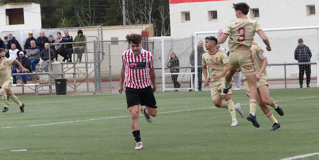 La ansiada reacción del CD Algar llega ganando un partido que tenía claro pronóstico adverso frente al filial del Real Murcia y que se resuelve gracias a un tempranero gol de Cohete y al acertada actuación del meta local Álex, a quien se observa en la foto superior junto a poste en un ataque murcianista.