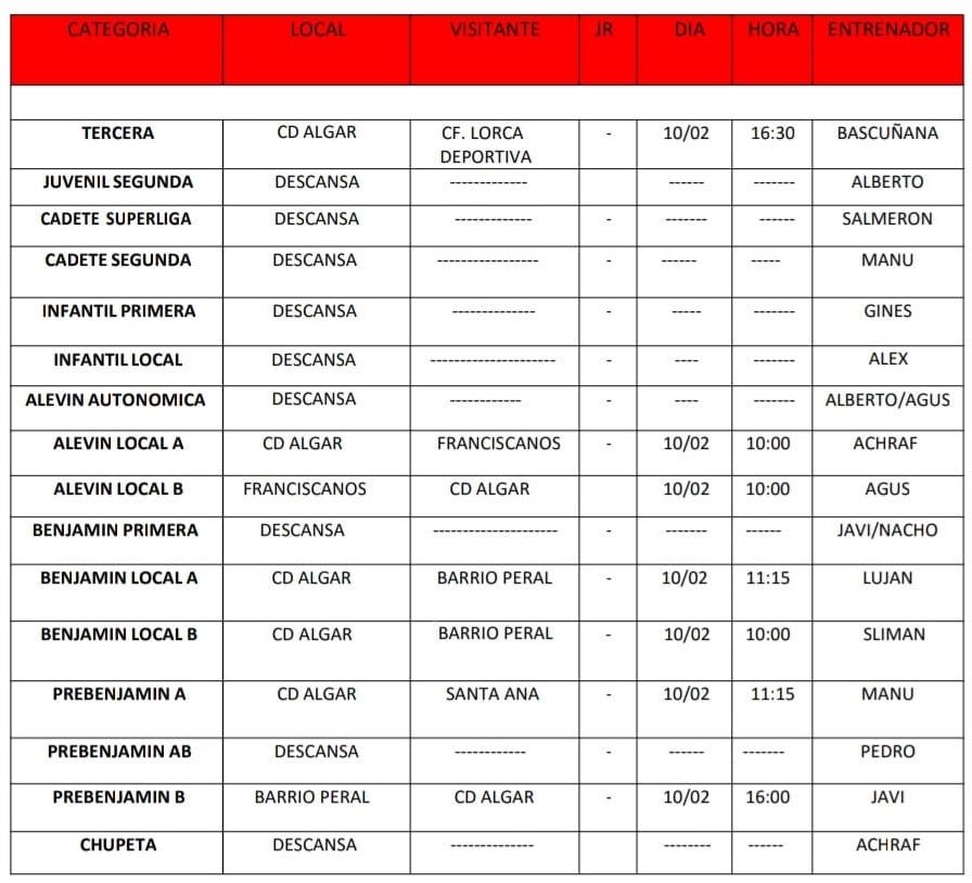 Rivales, fechas y horarios del CD Algar de fútbol, del CB Sierramar y El Algar-Los Urrutias de baloncesto y de la AD Algar Surmenor de voleibol femenino para este fin de semana. Fuera del deporte hay rifa familiar a las 18 horas del sábado en el local social de Los Urrutias y espectáculo de magia mañana en el Teatro Apolo.