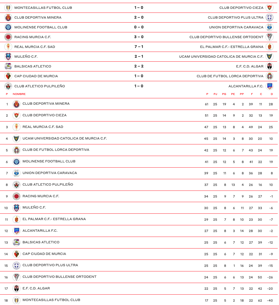 Partido de la jornada 25 de Tercera RFEF disputado en el campo San José de Roldán debido al mal estado del terreno de juego de Balsicas.