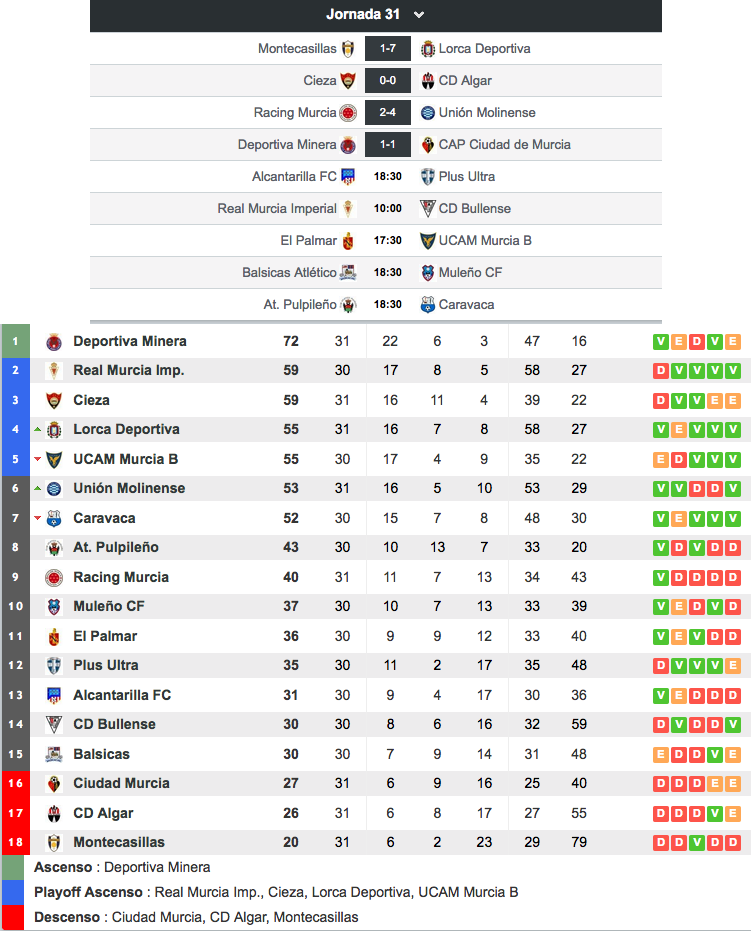 - Marcadores y clasificación extraídos de www.resultados-futbol.com