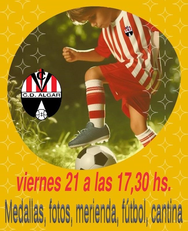 El Club Deportivo Algar celebra este viernes, a partir de las cinco y media de la tarde, la clausura de su escuela de fútbol en el campo Sánchez Luengo, con entrega de medallas, toma de fotos, merienda y cantina abierta durante la celebración.