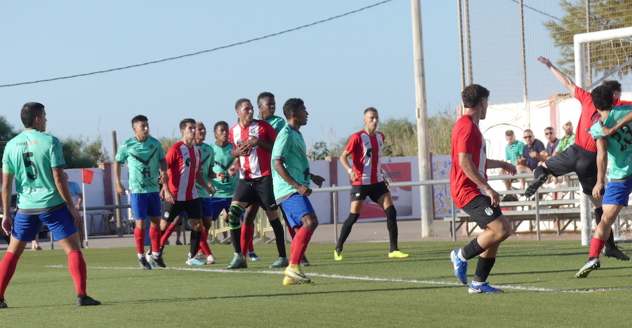El CD Algar ha vencido con muchos apuros al Mazarrón, equipo que llegaba como líder tras haber goleado en la primera jornada de liga. El principio del encuentro fue muy aguerrido y con enorme velocidad, a veces excesiva, que también generó entradas a destiempo. Marcó primero el cuadro visitante, pero en el minuto 21 llegó una jugada crucial cuando un futbolista rojiblanco es derribado dentro del área, acción que también supuso la expulsión del visitante Brayan Gómez.