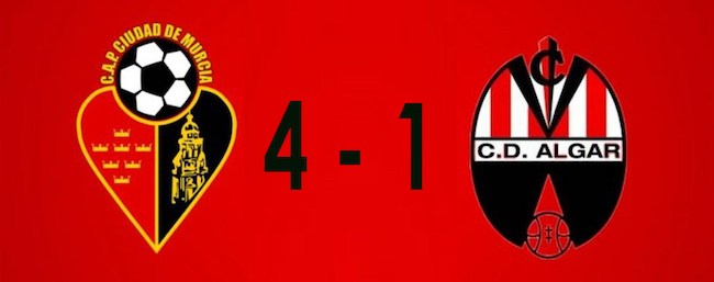 El CD Algar pierde ante el CAP Ciudad de Murcia y sigue en zona de descenso, aunque se mantiene la distancia de cuatro puntos con la primera plaza de salvación, pero, por contra, queda una jornada menos para reaccionar, pues ya son diez las jornadas que acumulan los rojiblancos sin ganar.