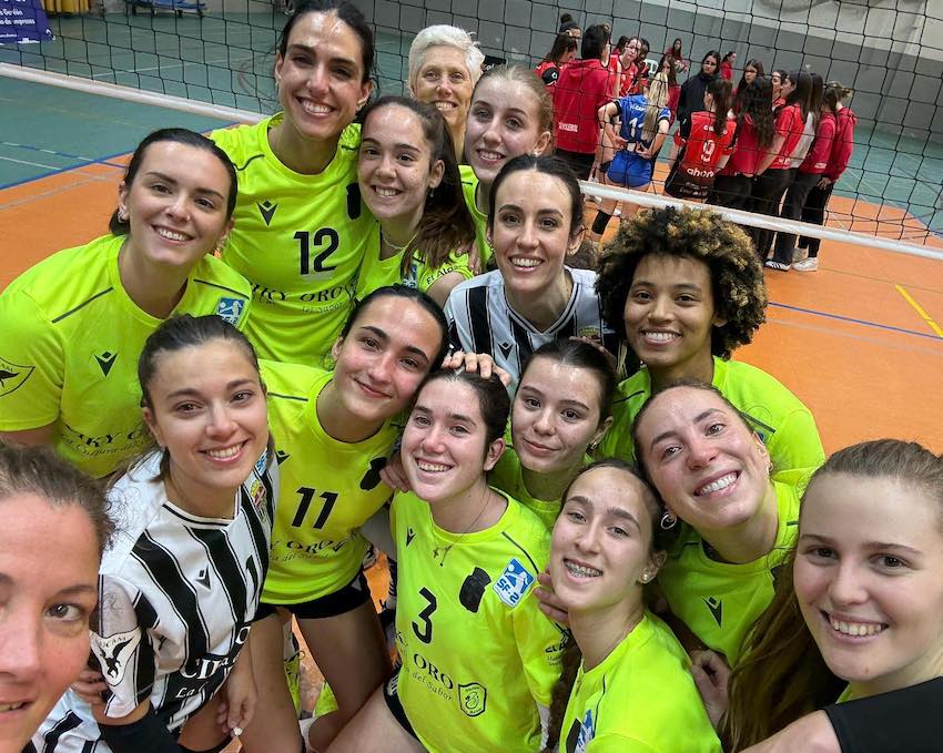 Imagen de autofoto de la presidenta y las jugadores tras culminar el último partido de la temporada regular