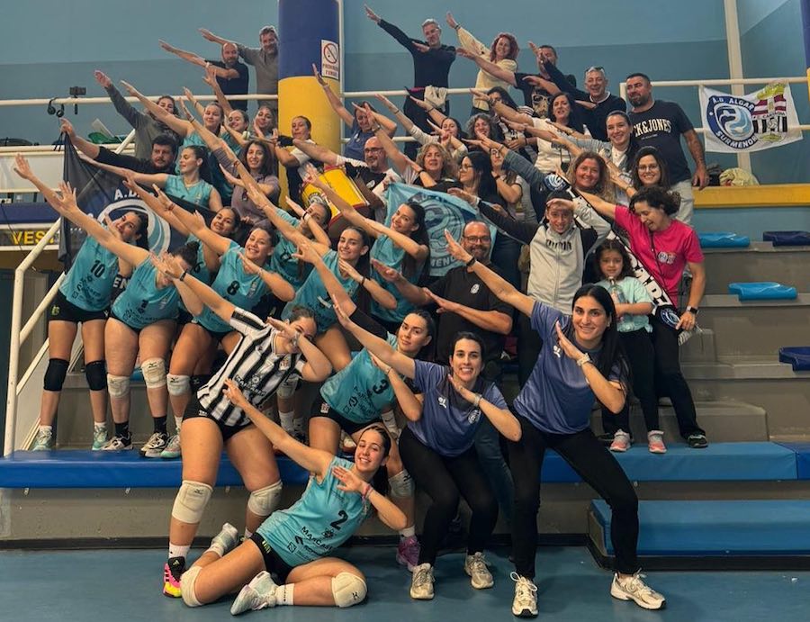 El equipo de voleibol femenino culmina su participación en el Campeonato de España de voleibol que se ha celebrado en Zaragoza, donde superó con brillantez la primera fase y cayó en octavos de final en un igualado partido ante Leganés (3-2). Después ha sumado 2 derrotas y una victoria, terminando en la posición final arriba indicada. En la imagen, se observa a las jugadoras en una simpática pose con aficionados, técnicos y directivos desplazados