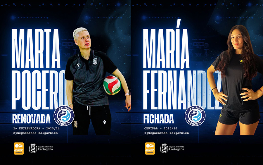 La AD Algar Surmenor incorpora a la jugadora murciana María Fernández González (a la que se observa efectuando un remate en la red la pasada temporada), quien actúa como central en la pista y que en las últimas temporadas ha militado en el Voley Playa Madrid en la Superliga Femenina 2 nacional. Por su parte, Marta Pocero renueva como segunda entrenadora del equipo cartagenero para la próxima temporada.