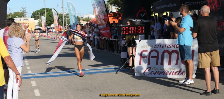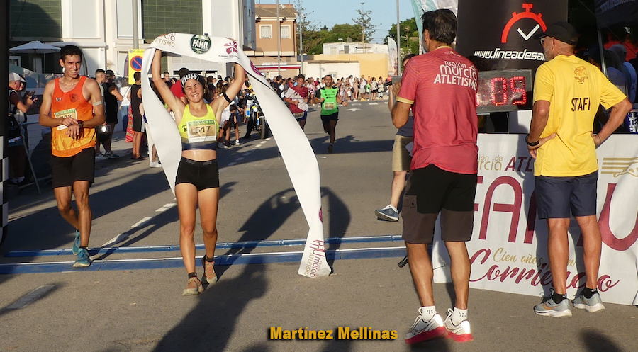 En féminas sucedió algo similar, pues la cartagenera Tania Salamanca tomó rápida ventaja sobre otras aspirantes, consiguiendo la cartagenera cruzar la meta con un muy buen tiempo en su modalidad de 35'02". La segunda corredora en cruzar la meta fue Inmaculada Pagán (Alumbres Sport) con 37'30", siendo tercera Isabel Pelegrín (37'55").