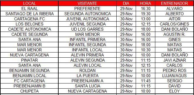 * Los equipos de segunda división sénior del CD Los Urrutias y CB Sierramar no tienen partidos de liga hasta el 14 de diciembre